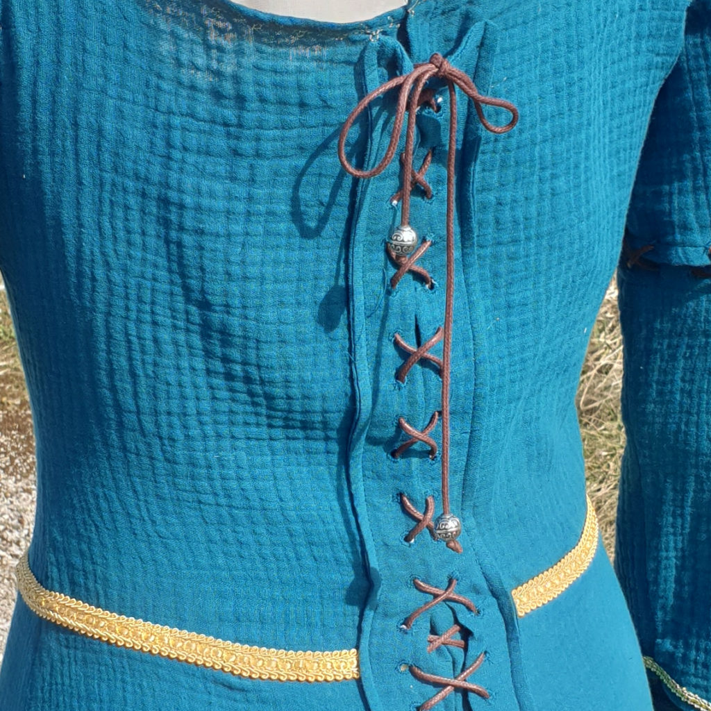 Le choix du tissu était une étape cruciale. J’ai opté pour une matière qui capturerait l’esprit rustique du film tout en offrant le confort nécessaire pour le cosplay. Les rubans ont été sélectionnés avec soin, accentuant les détails distinctifs de la tenue.