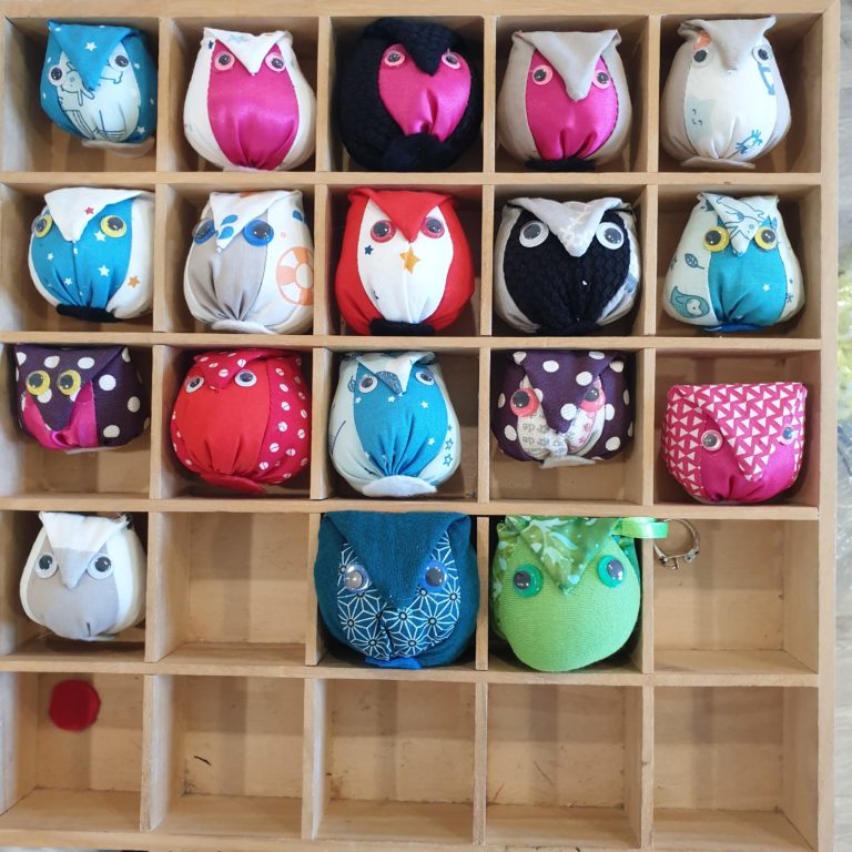 Le hibou, c’est mon nom de scène, mon logo, mais aussi mon petit objet en tissu rigolo ! Avec les plus petites chutes de tissu, il me reste…